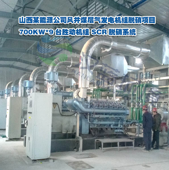 山西王莊煤礦瓦斯氣發(fā)電站脫硝項目,9臺勝動燃氣發(fā)電機組尾氣排放NOX從15g/kWh降到2g/kWh以內(nèi)